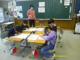 1年生の国語では、小さい「や、ゆ、よ」の学習プリントをしていました。「何をかいた」「これ、ちがうんじゃない」「ここ分からないから教えて」ペアでおしゃべりしながら、学習を進めていました。安心して、「自分の分からない、困った」が言えると、友達との学び合いも加速するようです。