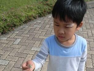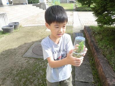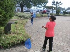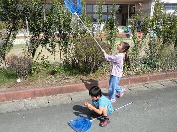 休み時間になると虫とり網をつかって、トンボやバッタ、蝶やカマキリ等の虫つかまえをする子どもがたくさんいます。どうしたらつかまえられるか考え、失敗してもくり返しチャレンジする姿がとってもいいです。