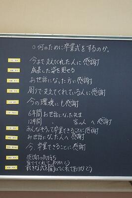 卒業式まであと7日となりました。6年生教室の背面には、卒業式までにやることがびっしりと書かれてありました。