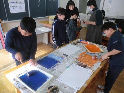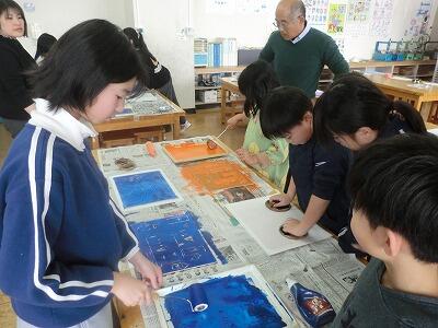 4年生図工「ほった線から始まるお話」 投稿: さくらんぼ (18:49) カテゴリー: 授業の様子 4年生の図工では、線彫りした作品を刷る時間でした。絵の具の濃さが同じになるように丁寧に版に色をのせたり、バレンを使って紙に写したり、友達と協力しながら丁寧に作業を進めていました。 Tweet -