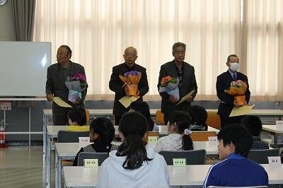 本日、計画委員会の児童が中心となり、日頃お世話になっている見守り隊の皆様、交通安全ボランティアの皆様、さくらんぼの先生、鮭の先生、田んぼの先生、そして交通指導員の皆様に感謝の気持ちをお伝えする会「感謝タイム」を行いました。ご来校いただいた皆様には、感謝の気持ちをこめたお手紙とお花をお渡ししました。また、代表児童の他、PTA会長さんからも、感謝の言葉をお伝えいただきました。これからも子どもたち、そして三泉小学校に対し温かいご支援を賜れましたら幸いです。どうぞよろしくお願いいたします。