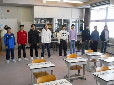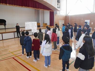 卒業式に向けた歌練習が始まりました。朝、体育館では在校生(1から5年生)、音楽室では卒業生(6年生)がそれぞれ練習していました。歌以外にも、卒業式等に向けた準備が始まっています。