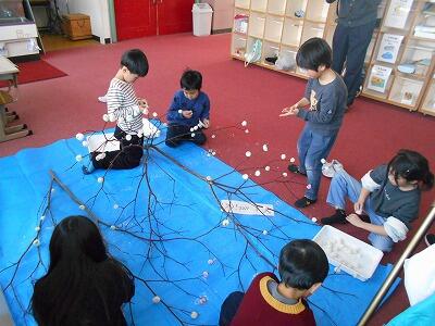 1・2校時、1年生はだんご木づくりを行いました。粉からカラフルなだんごをつくり、木にさして完成!元気にすごせますように。たくさんのしあわせや実りがありますように。願いをこめながら楽しく活動していました。
