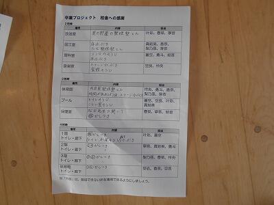 卒業式まであと7日! 投稿: さくらんぼ (16:30) カテゴリー: 授業の様子 卒業式まであと7日となりました。6年生教室の背面には、卒業式までにやることがびっしりと書かれてありました。 本日の2~4校時、「卒業プロジェクト:校舎への感謝」ということで、6年生が校舎内をきれいにしてくれました。 普段、手が回らないところがきれいになりました。6年生のみなさんありがとうございました。 Tweet -