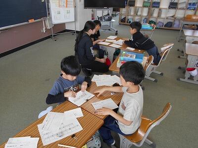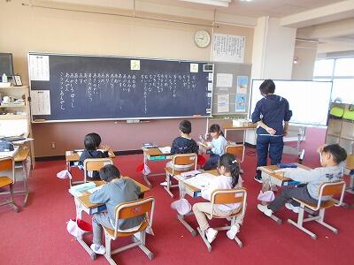 2・3年生複式:同じ教室内で、学年ごとに学習をしていますが、気にすることなく集中して学んでいました。