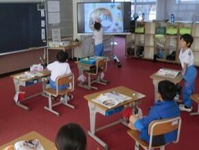 〇1年生は、生活科で「あきのおもちゃができたよ」の学習をしていました。教科書の写真を見て、おもちゃの材料や遊び方を説明していました。自分の経験をもとに友達にいっしょうけんめい説明する姿が印象的でした。