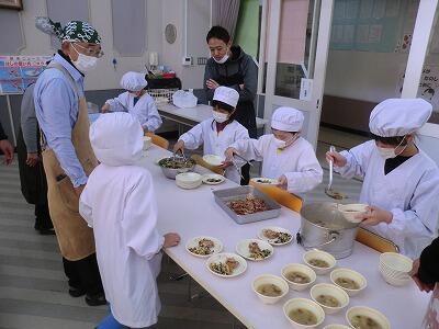 〇給食は1・2・3年生が協力して盛り付けをしていました。明日からは、4・6年生が登校する予定です。