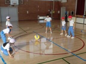 〇1・2年生の体育では、「ころがしドッジボール」を楽しんでいました。