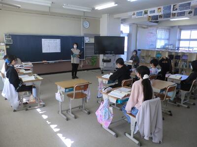 4、6年生の笑顔が学校にもどってきました 投稿: さくらんぼ (11/14) カテゴリー: 今日の出来事 インフルエンザの学年閉鎖期間を終え、今日から4、6年生の登校が再開しました。4年生は、算数「垂直、平行と四角形」の学習で、垂直の意味について、直線の交わり方やならび方から考えていました。 6年生は、国語「鳥獣戯画」での書き方の工夫を学び、それを、自分が紹介したい日本文化の魅力を伝えるための解説文を書くという学習を行っていました。本時はその1時間目で、これからの学習の進め方を、みんなで確認していました。 Tweet -