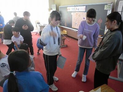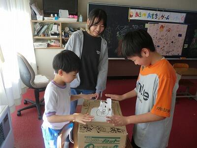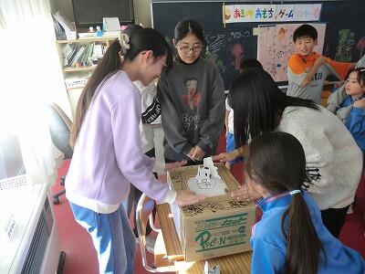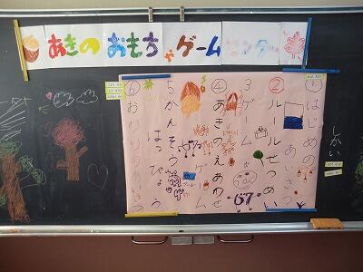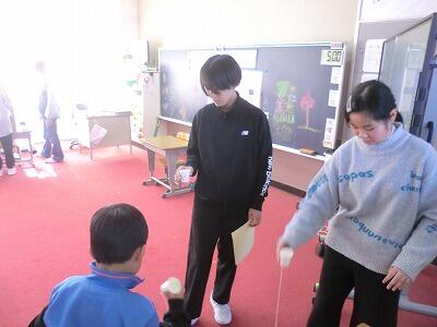 手作りおもちゃで笑顔いっぱい 投稿: さくらんぼ (17:54) カテゴリー: 授業の様子 1年生の生活科では、「あきのおもちゃゲームセンター」に6年生を招待し、手作りのおもちゃで一緒に遊んでいました。「とんとんずもう」「けんだま」「ボーリング」どれも、どんぐりや松ぼっくり、葉っぱなどが使われていました。1年生と6年生が、笑顔いっぱいで遊ぶ姿に、見ているこちらも幸せな気持ちになりました。 【6年生への招待じょう】 Tweet -
