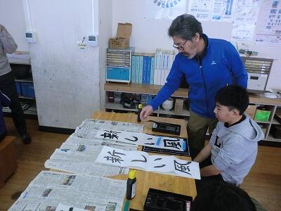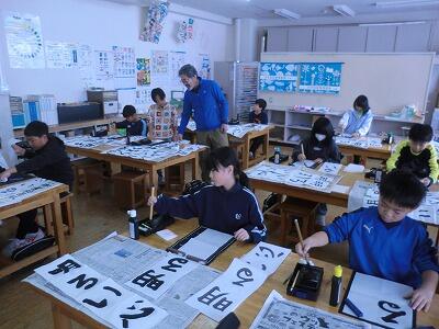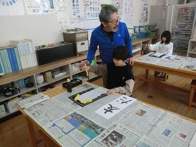 本日、日本書道院の審査員でもいらっしゃる、土田 収先生にご来校いただき、3年生から6年生の子どもたちに書き初め指導をしていただきました。(書き初め指導は、土田先生のご厚意で今年度で3年目となります)土田先生から、筆づかいや書き方のポイント、太く、大きく書こうなどとアドバイスをいただきました。土田先生より、「すみはたっぷりつけて」「いいね!太い字の方がのびのびして元気よく見える」「ひじ上げて筆を立てよう」などと、声をかけていただくと、あっという間に子どもたちの字が上達していきました。書き初め展でどのような字が見られるか楽しみです。土田先生ご指導ありがとうございました。